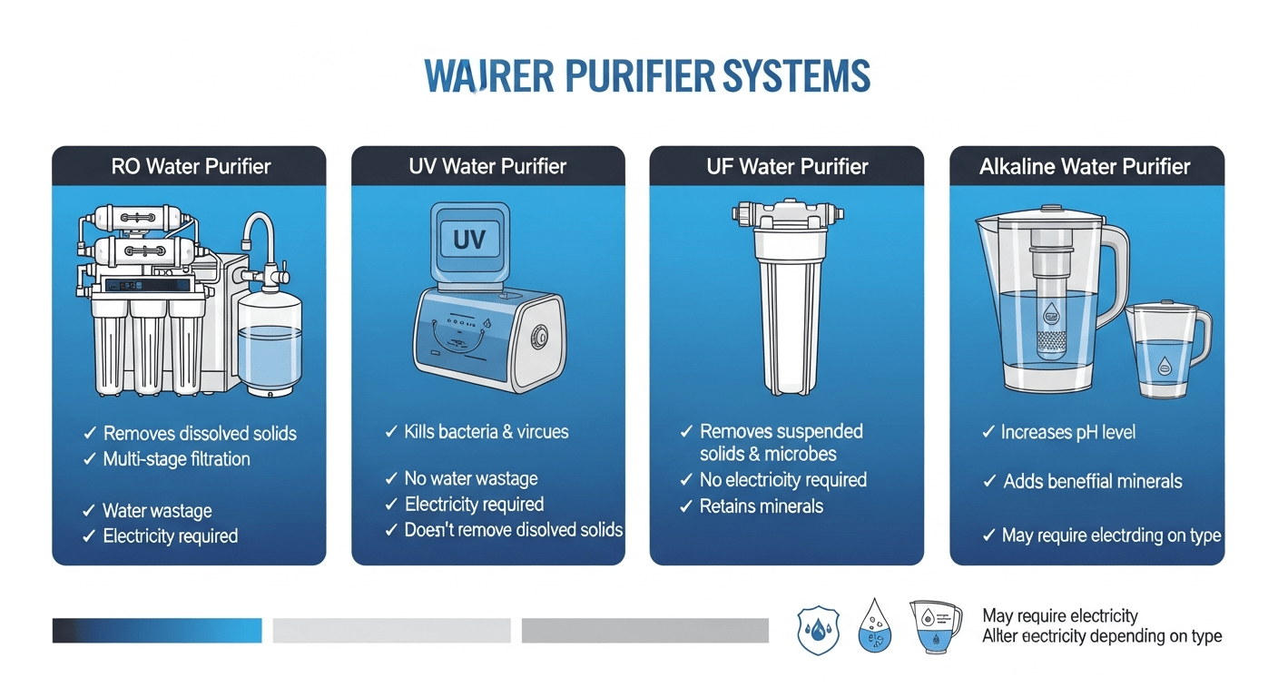 Read more →Difference Between RO, UV, UF and Alkin Water Purifiers Home Blog Difference Between RO, UV, UF and Alkin Water Purifiers […]