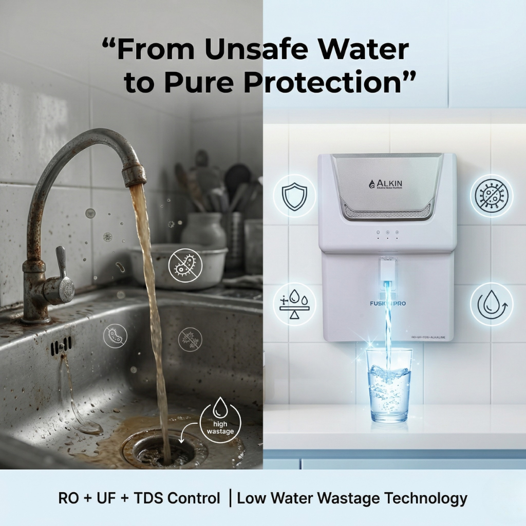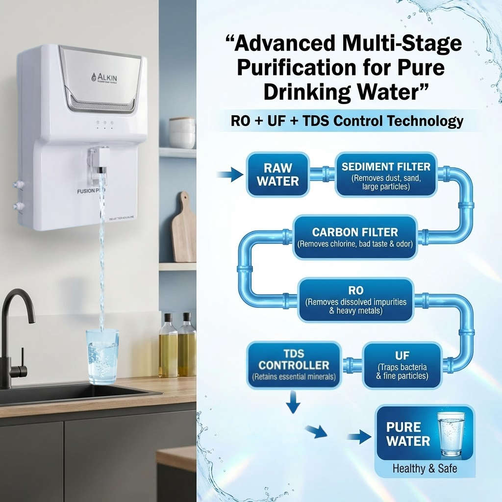 ALKIN FUSION PRO is a premium wall-mounted alkaline RO purifier designed for Indian homes and offices. It delivers safe, clean and healthy drinking water with advanced multi-stage purification technology. :contentReference[oaicite:0]{index=0}
