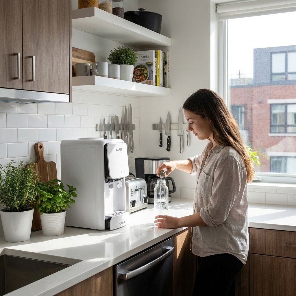 Alkin Cloud CT is a compact alkaline RO water purifier with advanced multi-stage filtration and hot & cold dispensing features. Designed for homes and offices, it ensures clean, safe drinking water with low water wastage and a reliable storage system for everyday convenience