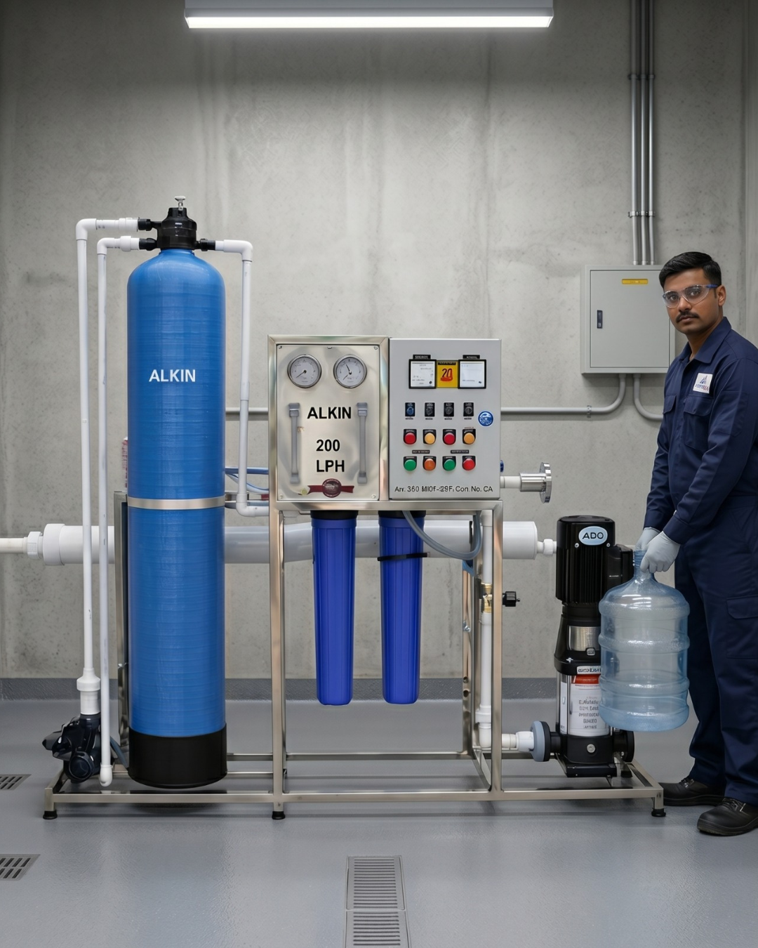 ALKIN SUPER 200 is a compact commercial RO plant designed for hotels, schools, nursing homes, offices and light industries. It delivers reliable purified water with advanced reverse osmosis technology and efficient daily performance. :contentReference[oaicite:0]{index=0}