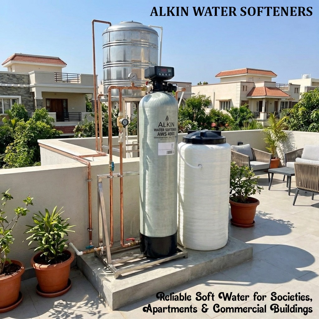 Conquer hard water problems with the ALKIN AWS 4000 Water Softener. Built for homes, apartments, hotels and commercial spaces, it helps remove hardness minerals and provides smooth soft water for daily use.